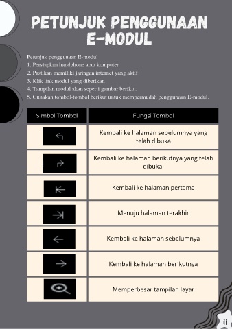 5. Gunakan tombol-tombol berikut untuk mempermudah penggunaan E-modul.